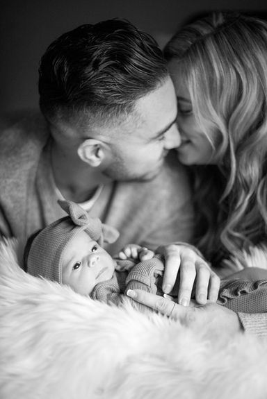 Our lifestyle newborn session takes place in the comfort of your own home and takes up to 2 hours. This longer time frame allows for a relaxed atmosphere and a variety of images with the parents, siblings and solos of the newborn.